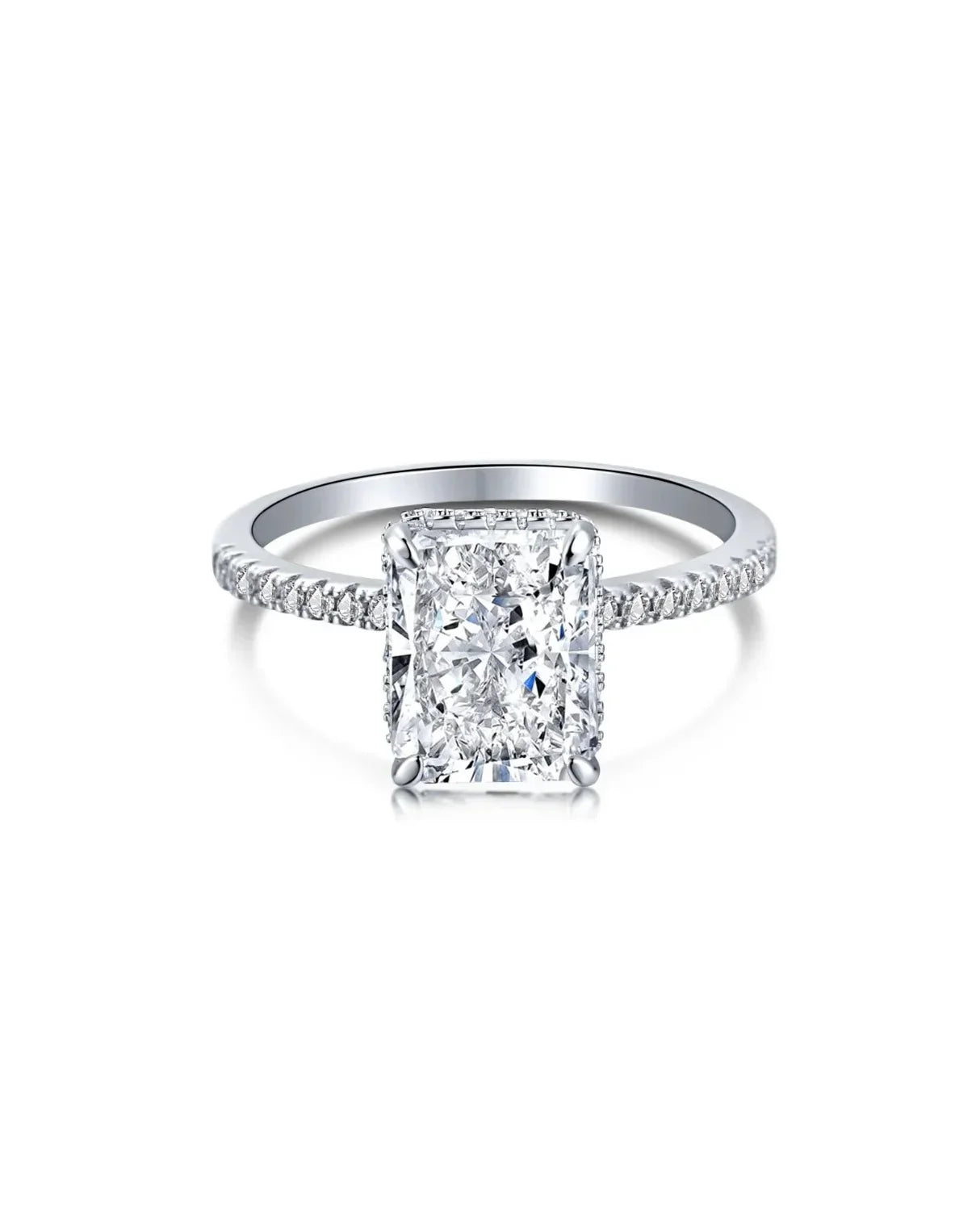 Der zentrale Radiant-Schliff-Diamant fängt das Licht auf faszinierende Weise ein und sorgt für ein außergewöhnliches Funkeln.